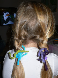 Eller det vil sige, at jeg har fået nye fantastiske hæklede bryster i LisbethLys give away!!!!! Tak Lisbeth, de er så fine. Her ses både brysterne og de smarte hårelastikker i Sofias blonde lokker.